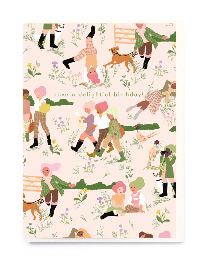 Countryside, "have a delightful birthday!" message. Blank inside and supplied with an off white envelope. Designed and printed in the UK.