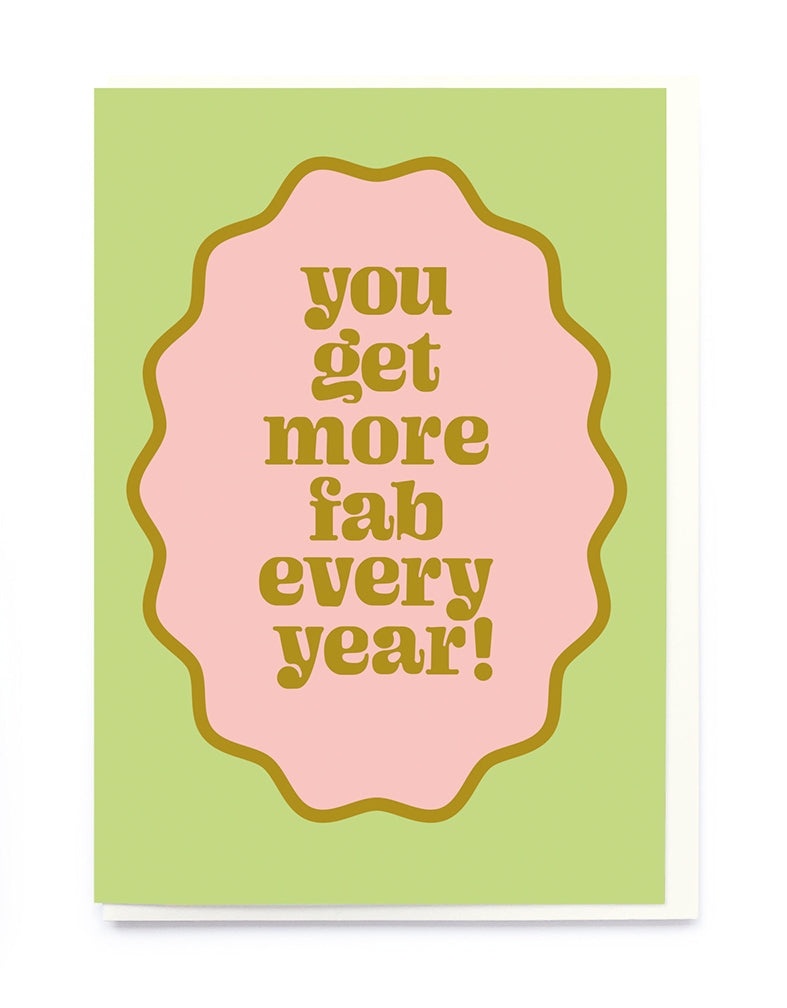 Celebrate the fabulous friend in your life who only gets better with age. With bright pastel colours and bold typography, this card is ideal for anyone who embraces their birthday as a time to get even more fabulous.