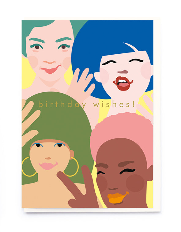 Say hi, "birthday wishes" gold foil message. Blank inside and supplied with an off white envelope. Designed and printed in the UK.