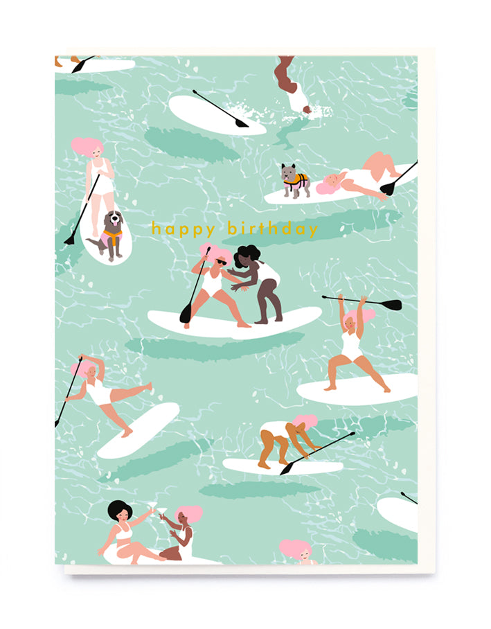 Fun in the water, "happy birthday" gold foil message. Blank inside and supplied with an off white envelope. Designed and printed in the UK.