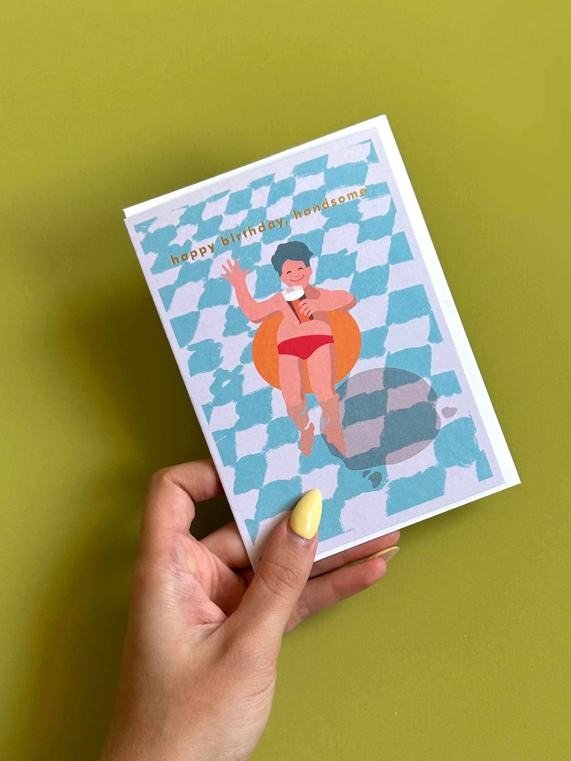 Great for a confident king who loves a pool day, a good tan, or a birthday getaway. Gold foil text adds that little luxe touch.